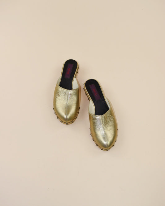 Kenzo Gold Leather Studded Clogs - Size 37, 6.5