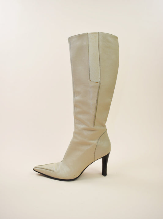 Y2K Via Spiga Cream Leather Boots - Size 10